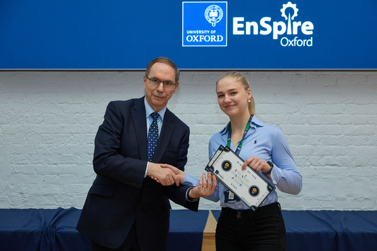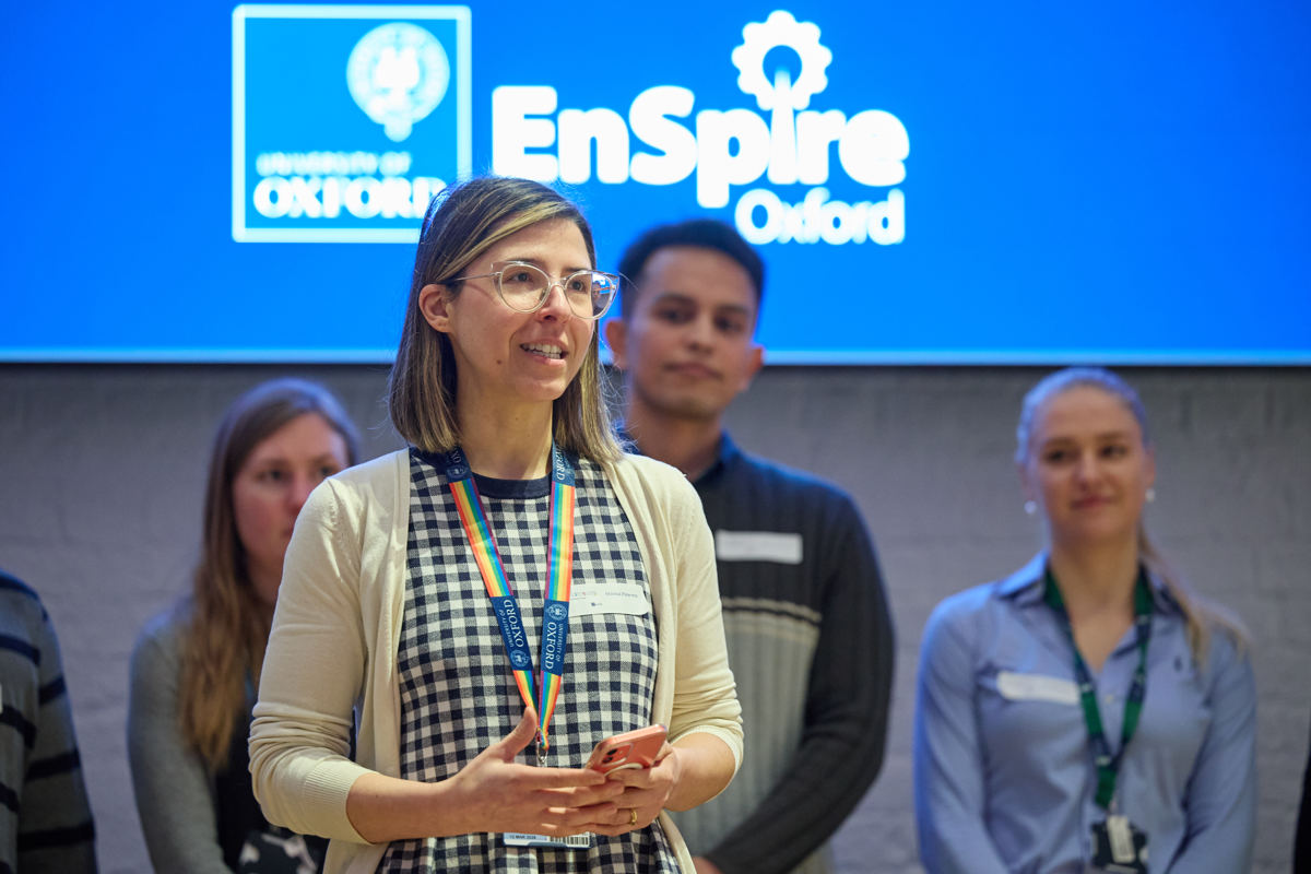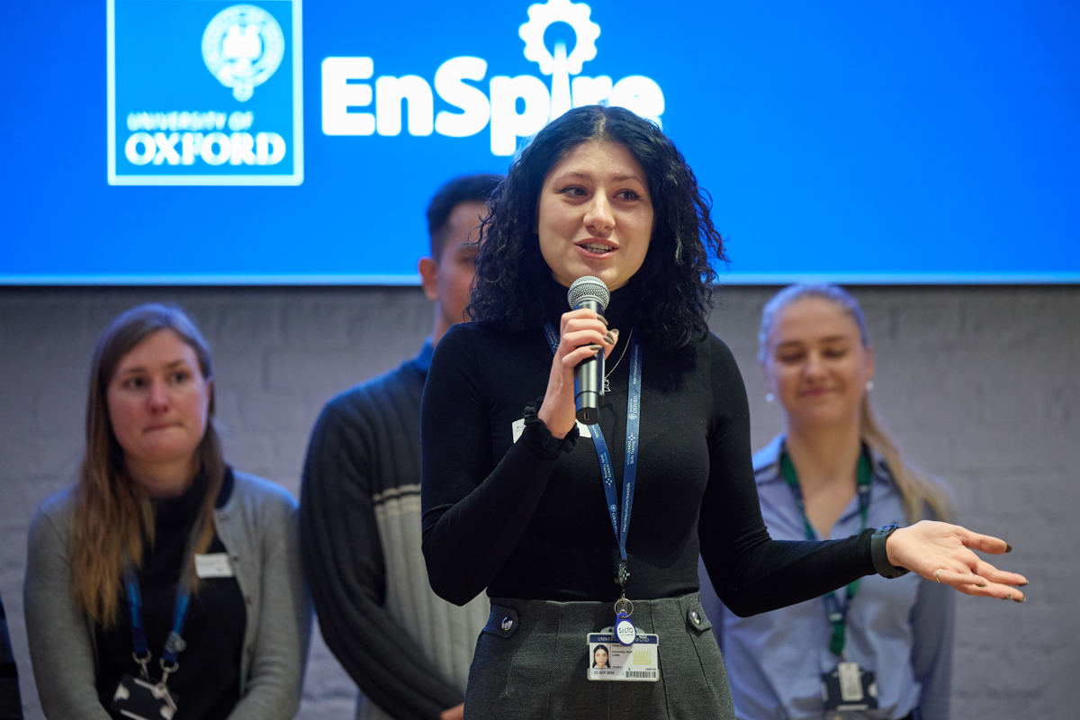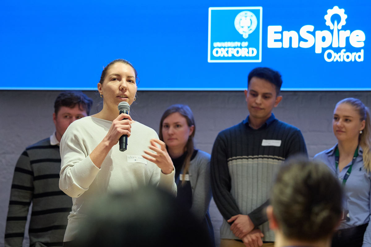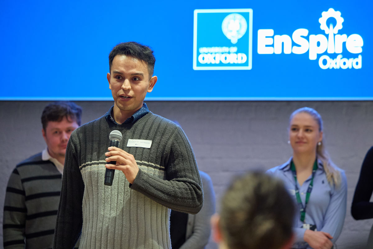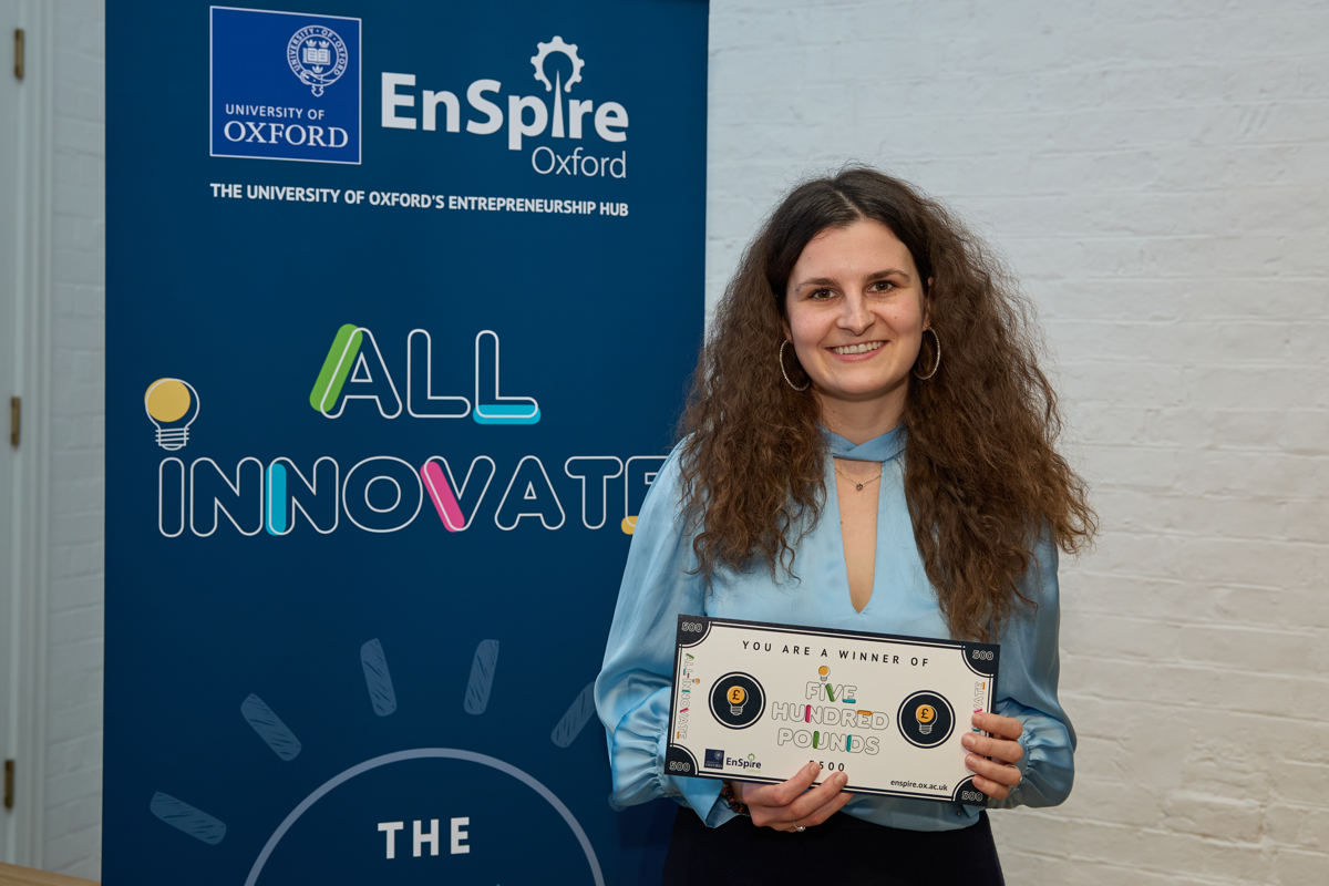 Teams were also invited to apply for funding to test out their idea, and following a judging process, EnSpire were delighted to award £500 funding to many teams, as well as additional funding and the People’s Choice award (chosen by the audience) to Ana Sousa Geros, Paulina Siejka-Zielinska and Zoe Christoforidou, PhD at Dosojin, and the Pro Vice-Chancellor award presented by Lionel Tarassenko to Alina at BioMorph.