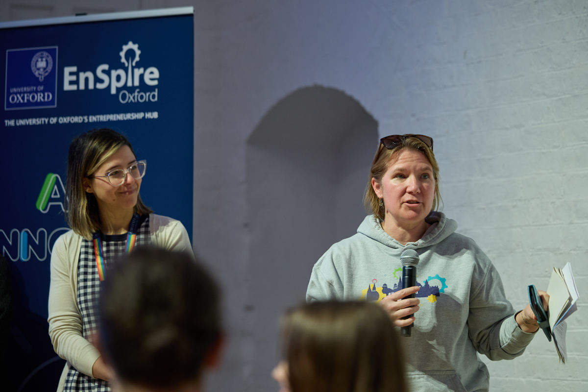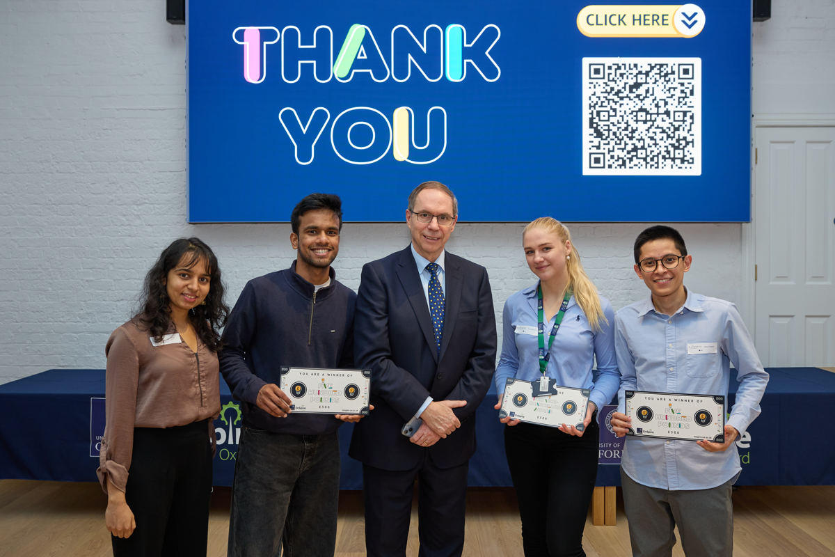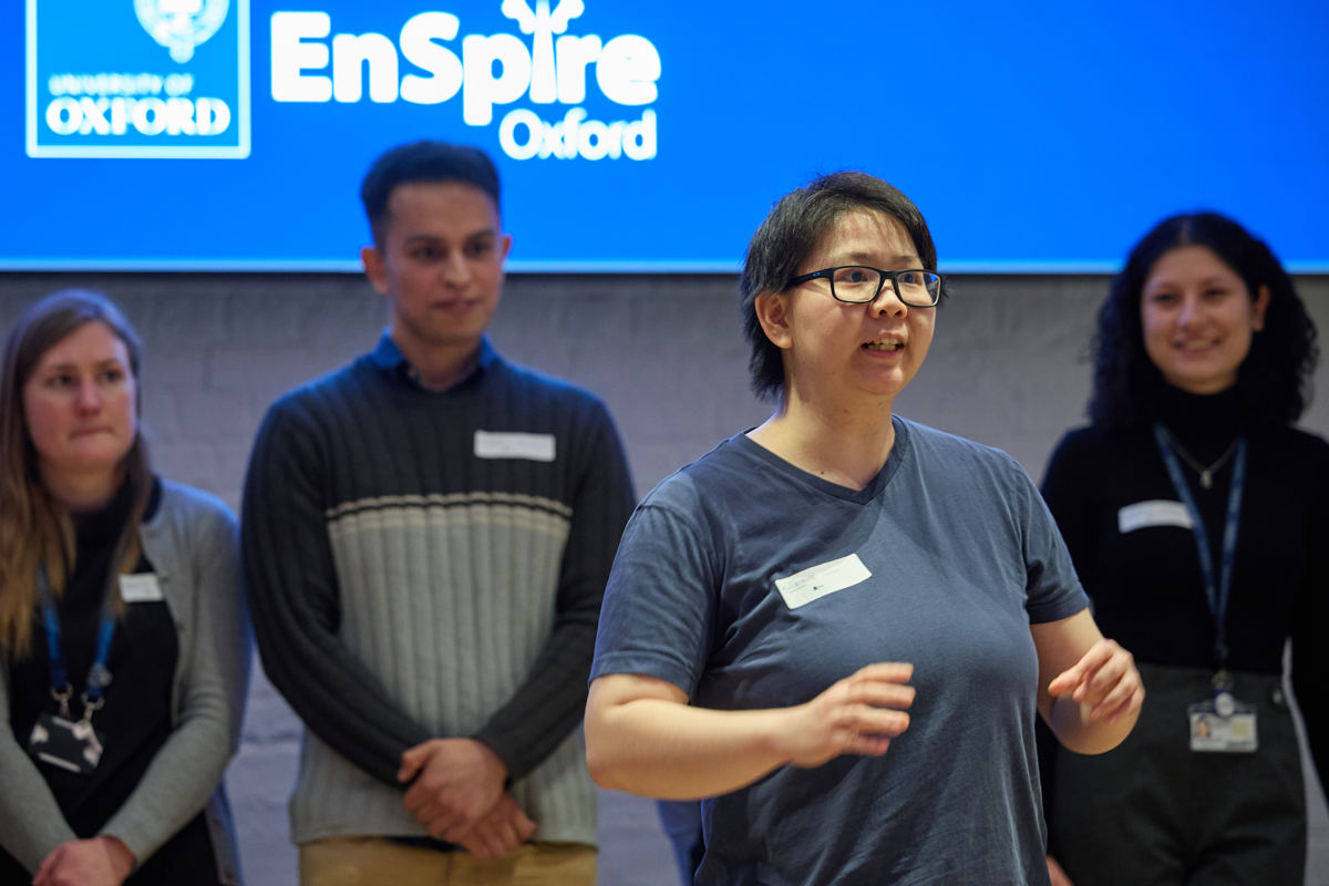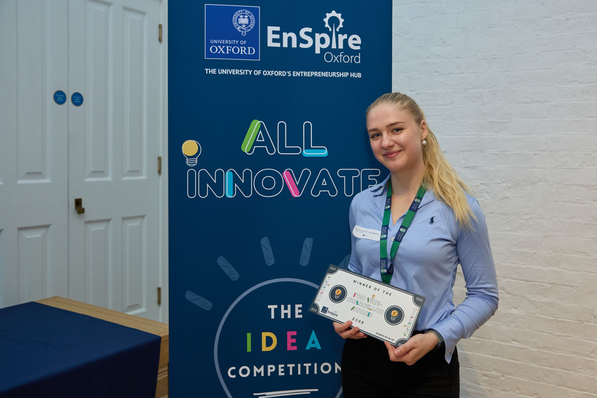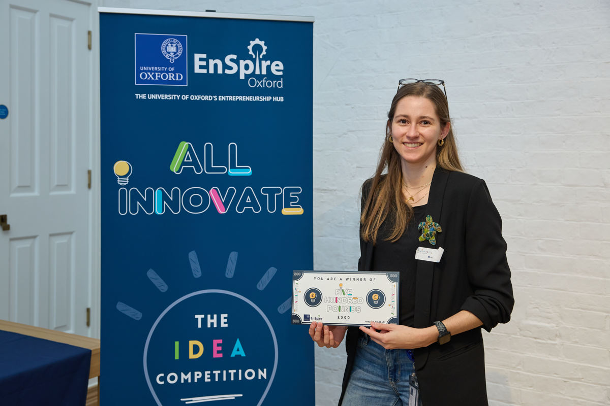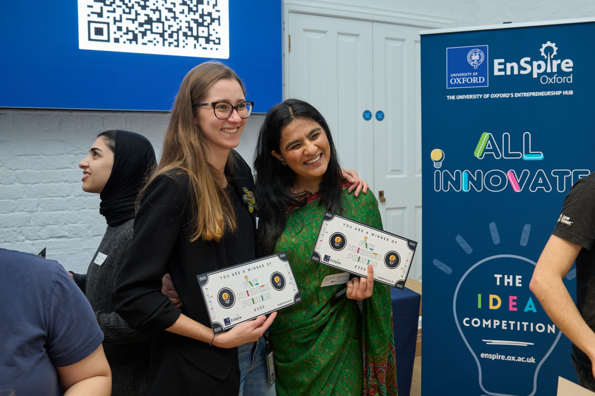 Teams were also invited to apply for funding to test out their idea, and following a judging process, EnSpire were delighted to award £500 funding to many teams, as well as additional funding and the People’s Choice award (chosen by the audience) to Ana Sousa Geros, Paulina Siejka-Zielinska and Zoe Christoforidou, PhD at Dosojin, and the Pro Vice-Chancellor award presented by Lionel Tarassenko to Alina at BioMorph.