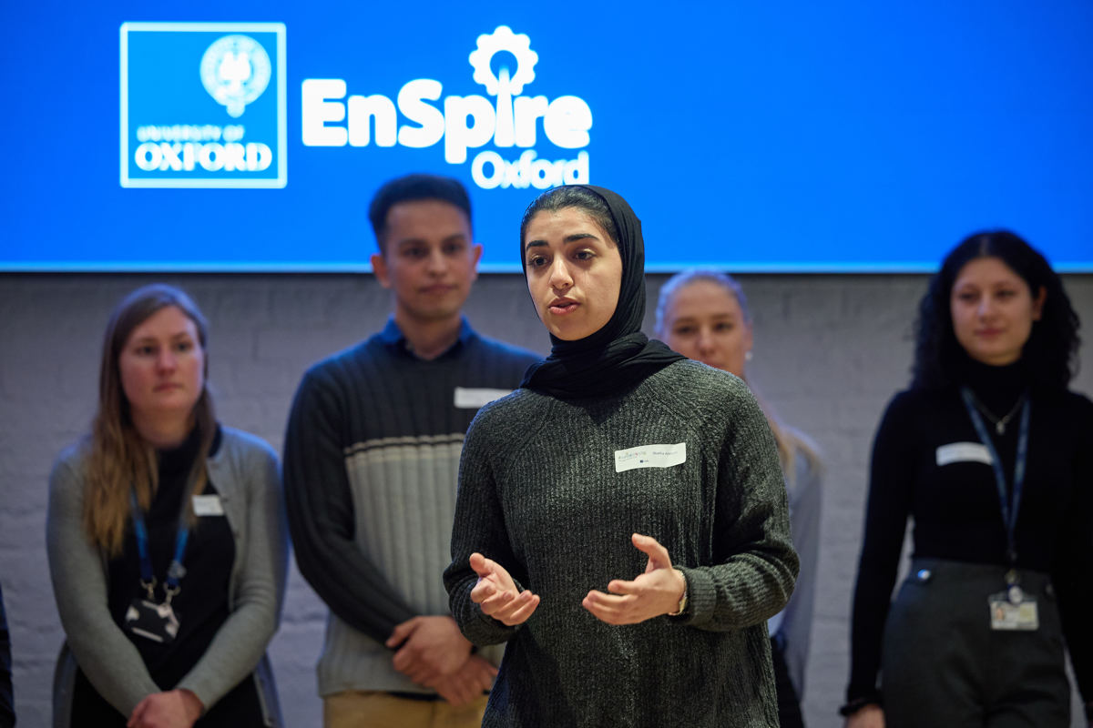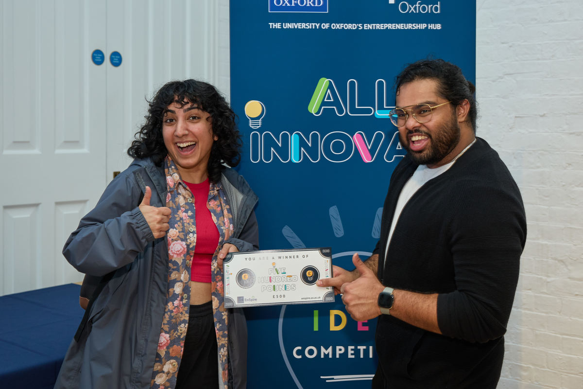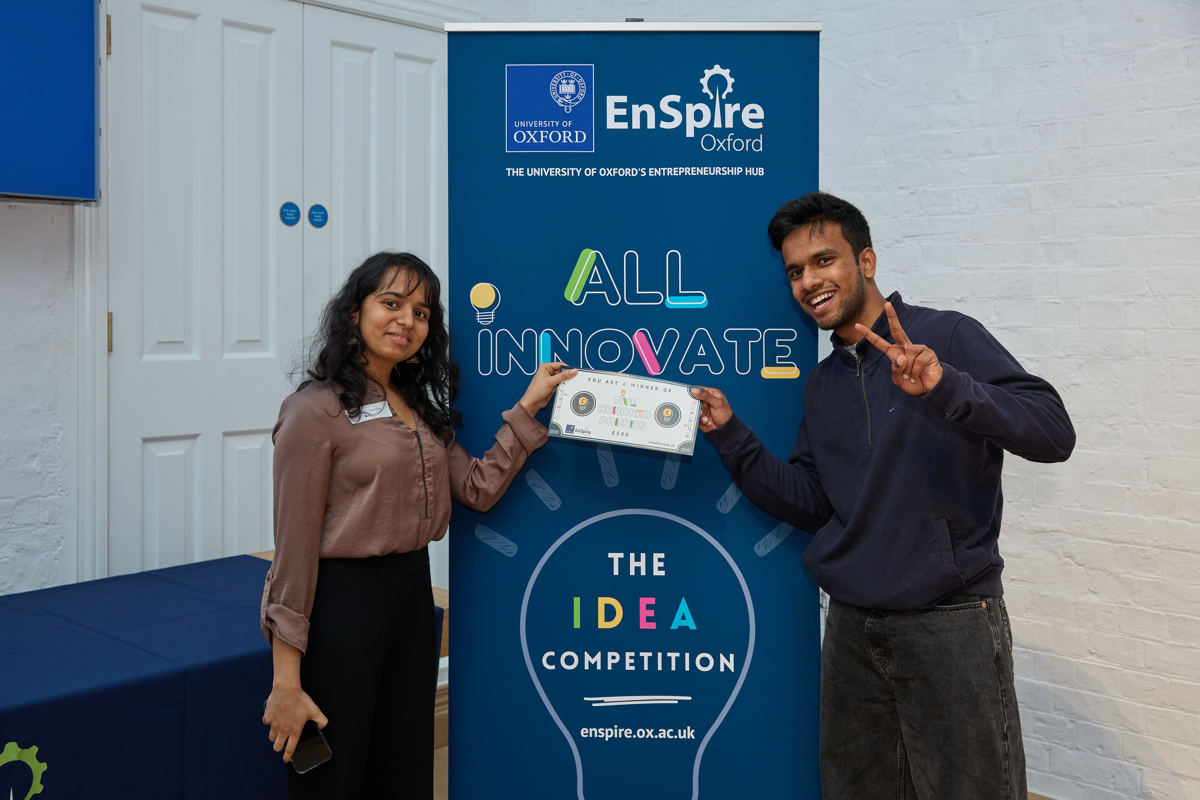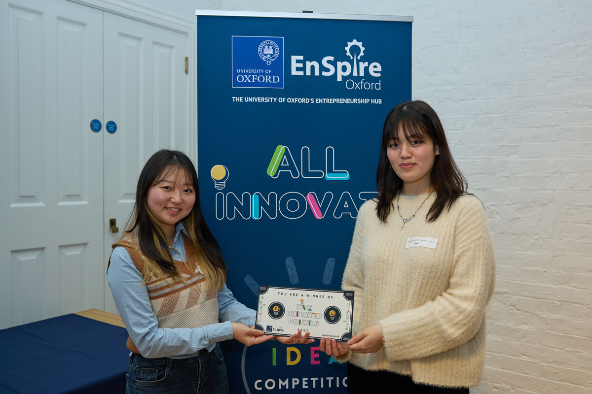 During Hilary term 2024, EnSpire hosted the All-Innovate Showcase event as the culmination and celebration of the All-Innovate idea competition. Attendees from the local entrepreneurship ecosystem gathered at Reuben College to view the finalists' Business Model Canvases, hear their pitches and vote for their favourite business idea.